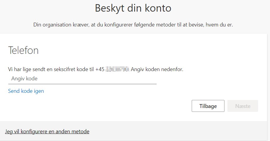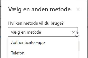 https://aka.ms/mfasetup Herefter møder du følgende vindue: