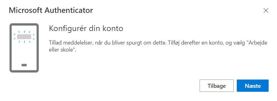 Hvis du vælger Authenticator-App, kommer nedenstående vindue: